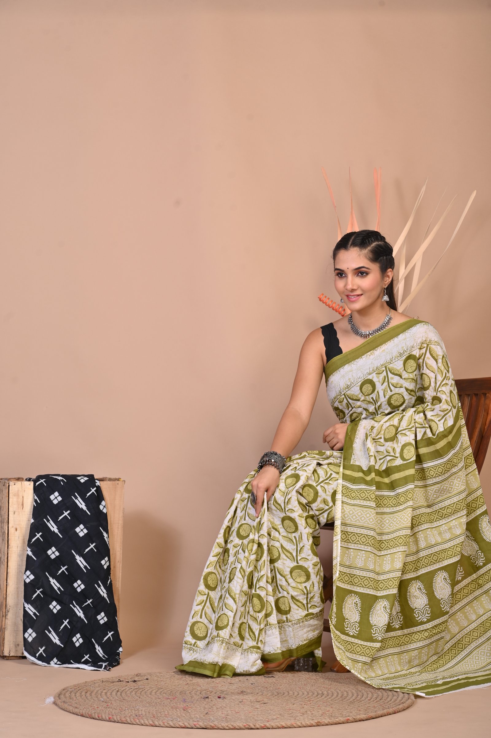 Cotton mulmul saree Hand block print All saree with same designer blouse Saree lenght 5.50Blouse lenght .80cm
